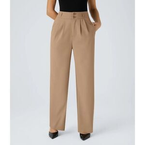 NWT Size Lrg (T) Halara High Waisted Button Zipper Side Pocket Shirred Straight
