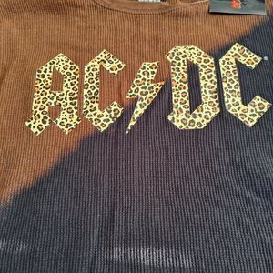 NWT-Size XL AC/DC Crop Tie Dye Waffle Knit Animal Print Band Tee Long Sleeve