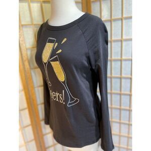Super cute long sleeved tee from Happy Holidays. New with tags. Size small. Reads Cheers with glitter accent. 100% cotton. Machine washable. Made in India. Excellent condition. Nonsmoking home.