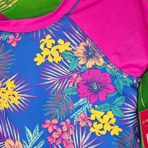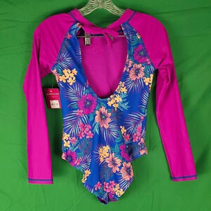 NWT So Girls Purple Blue Floral Long Sleeve Surf Island Rashie Swimsuit 14