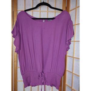 bright, breezy, and lightweight boho blouse from Soho Jeans. New with tags. size medium. Elastic corset style waist. Flutter sleeves. 100% viscose. Machine washable. Made in China. Excellent condition. Nonsmoking home.
