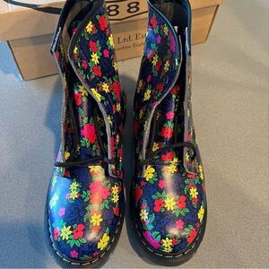 NWT Solovair Floral Made in England Original Dr Martens Leather Combat Boots 7