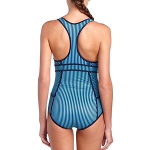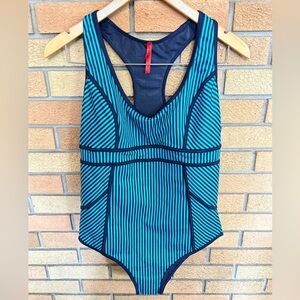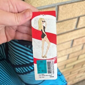 NWT Spanx Hourglass Shaping Swimsuit One Piece Navy Splash Thin Stripe Size 16