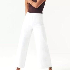 NWT Spanx On The Go Cropped Wide Leg Pants White Stretch Pull On Sz 1X