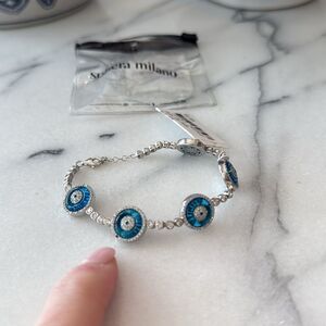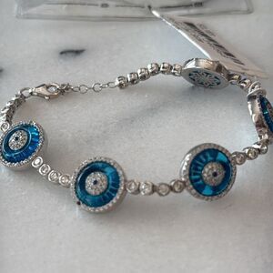 NWT Sphera Milano Sterling Silver Cubic Zirconia Evil Eye Link Bracelet