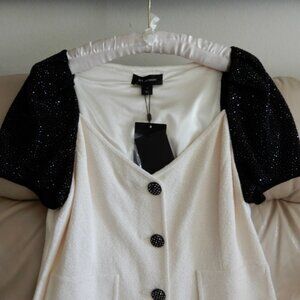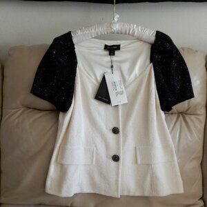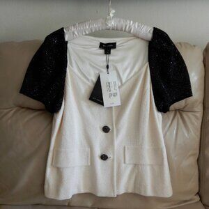 NWT.St.John Luxuries short sleeve Blazer beautifully embellished with black crystal stones , two tone , front buttons closure . One of a kind sophisticated piece , perfect for formal occasions a timeless piece you will enjoy forever.Original price tag $1350 ,minor cut on the tag /please ref. To the pics/.Great buy🌸
