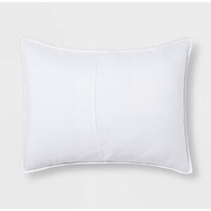 This is a new with tags Threshold Paisley Stitch Quilt Sham. The color is white and the size is standard (20in x 26in). Add a touch of elegance to your bedroom decor with this beautiful quilt sham! The intricate paisley stitching adds a sophisticated and stylish flair. The garment-washed fabric ensures a soft, comfortable feel. This sham is the perfect addition to complete your bedding set. It can also act as a decorative pillow cover.