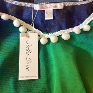 NWT Stella Cove Girls Color-burst Pom Pom Swim suit Cover up Poncho. Size 14.