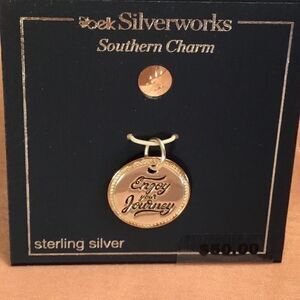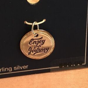 Brand new sterling silver pendant/charm. It has a diameter of 3/4” is ribbed on the rim and has an inscription, “Enjoy The Journey”.