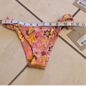 New with tag and hygienic liner intact Stone Fox Swim Bijou Bikini Bottom in Retro Pop orange pink purple floral. Dive into style with the Stone Fox Swim bikini bottom, perfect for a chic beach look. Size XS please see measurements pictures to be sure of fit. Retail: $88