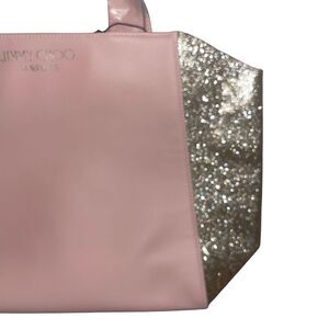 NWT(Straps Wrapped) Jimmy Choo Pink & Gold Glitter Large GWP Tote Bag
