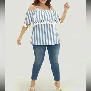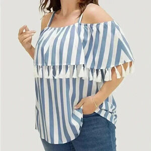 NWT!Stripe print tassel trim cold shoulder blouse size 12 or Large