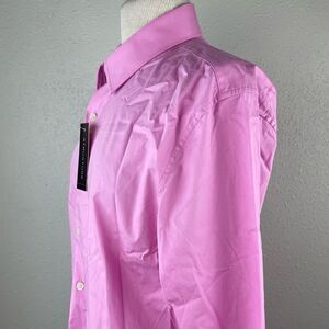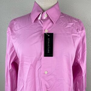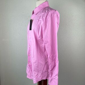 Classic dress shirt featuring a fun bright pink color and slim stretch fit.