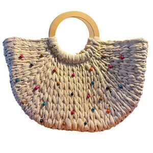 Elevate your style with this chic cream woven handbag. Featuring vibrant multicolor accents, it's perfect for any occasion. The unique design and sturdy construction make it a must-have accessory.