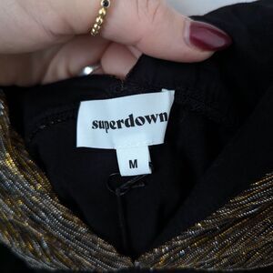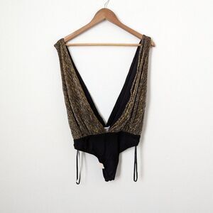 NWT Superdown black gold Nico sparkle glitter plunge deep v-neck bodysuit