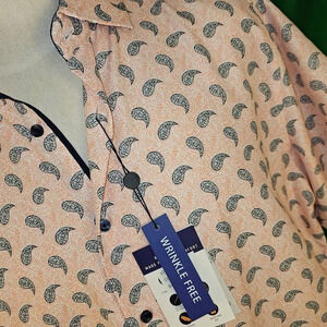 NWT Suslo Couture Mens Orange Paisley Tailored Slim Fit Short Sleeve Shirt 3XL