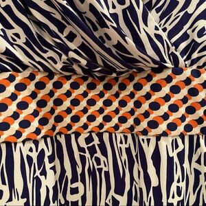 Stretchy, draped, draping, layered, flattering, abstract print, circle print, Royal, Krefeld tones, midi length, workwear, casual dress