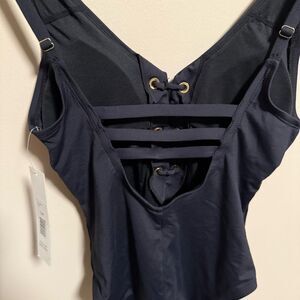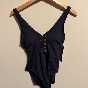 NWT TAHARI Lace-Up One-Piece Swimsuit Black