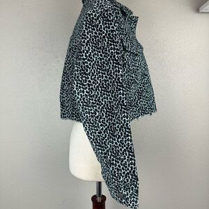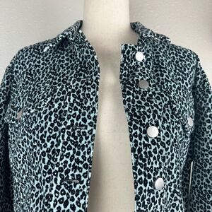 super cute blue cheetah jacket! measures 21 inches armpit to armpit and 15 inches shoulder to hem