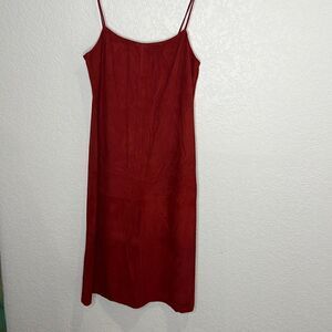 Gorgeous 100% suede slip dress. Back discrete zipper, fully lined. Perfect for fall transition- or wear as a jumper over a white starched blouse with boots. The options are endless!