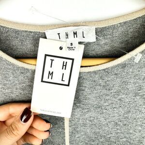 NWT THML Gray Striped Quarter Sleeve Knit Sweater Dress
