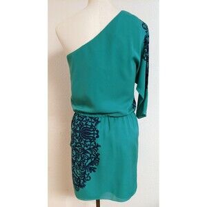 NWT~TIBI 100% Silk Teal Green w/Blue Design One-Shoulder Party Occasion Dress 4