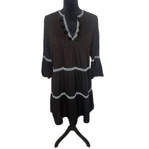NWT TOMMY BAHAMA EMBROIDERED TIERED COTTON TASSEL BLACK DRESS WOMENS SIZE SMALL