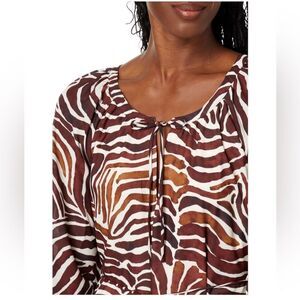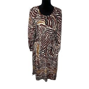 Keywords: Tommy Bahama, midi dress, zebra print, casual dress, long sleeve, elastic waist, animal print, women's fashion, breathable material, round neck, brown dress, new with tags.