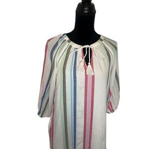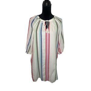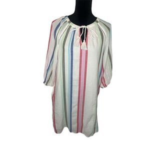 Keywords: Tommy Bahama, cover-up, summer dress, multicolor, relaxed fit, split neck, tassel ties, 3/4 sleeve, lightweight, breathable, beachwear, casual, women's fashion, short dress, NWT.