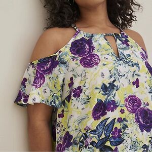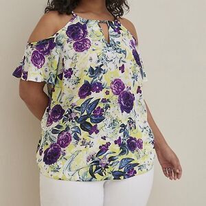 NWT TORRID GEORGETTE CHAIN-LINK COLD SHOULDER BLOUSE SIZE 00