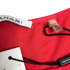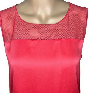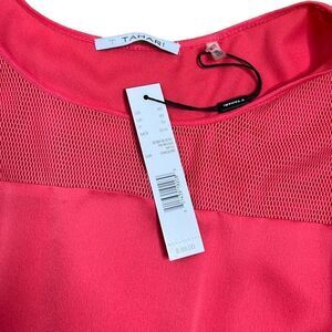 $88 NWT T Tahari sleeveless top. Has small imperfection from security tag - see picture. Sz xs. Bright Coral color. Front has mesh detail. Front slightly shorter then back. Front is polyester. Back is viscose blend. Armpit to armpit is about 17”. Length is about 22-25”
