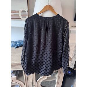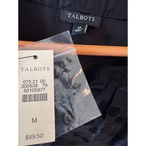 NWT Talbots Black Long Sleeve Polka Dot Split Neck Blouse Size Medium