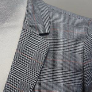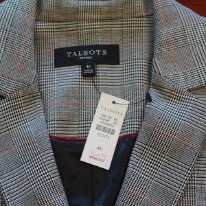 (NWT)Talbots Classic Plaid Blazer, Grey with Red & Black Strips, 4P