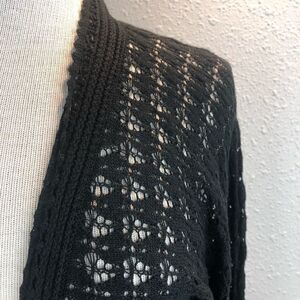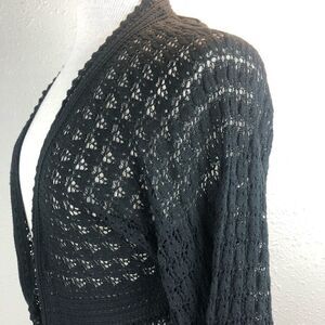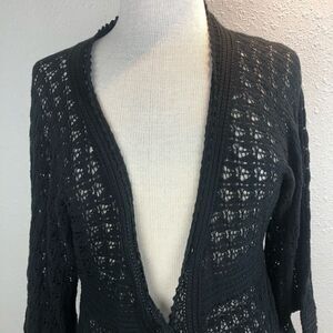 Cute and classic black cardigan sweater top by Tapemeasure measuring approximately 18 inches armpit to armpit and 30 inches in length. It’s in new condition with tags.