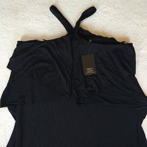 New with Tag (NWT) Beautiful Tart Black Twisted Halter Top tank with ruffled top. Approx measurements are pictured.