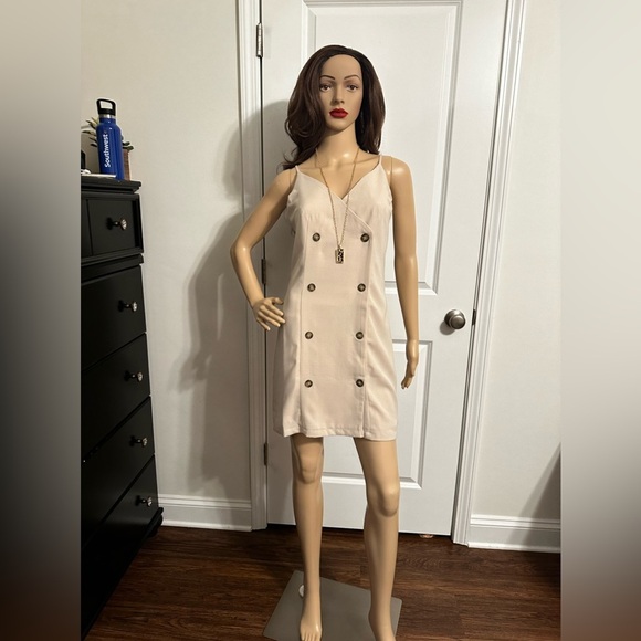 NWT-Taupe Sleeveless V-Neck Front Buttoned Down Relaxed Fit Mini Dress