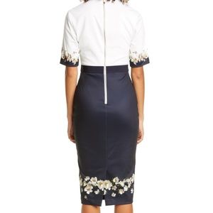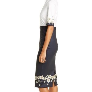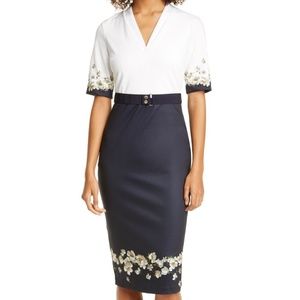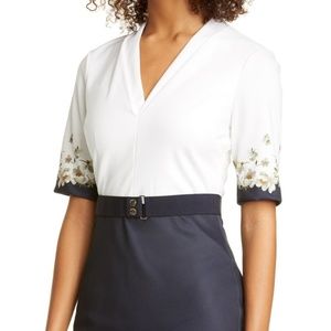 🌟Perfect for that team meeting at the office🌟 Details: A two-piece look is all yours in this pretty and polished dress that shows off a row of flowers around the hemline and sleeve cuffs. Features: ✨Exposed back-zip closure ✨V-neck ✨Elbow-length sleeves ✨Faux belt detail ✨Partially lined Ted Baker: Size 2 Equivalent USA: Size 4-6 (Small) (Waist 28", Bust 35", Hips 36.5") Material: *96% Polyester, 4% Elastane