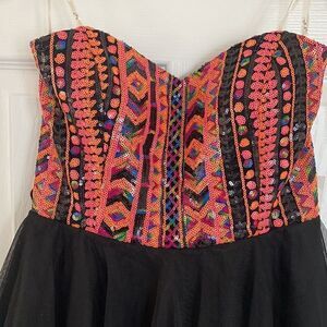 NWT! Teeze Me Strapless black Formal Dress With Tulle And multicolored Sequins Women’s Size 5