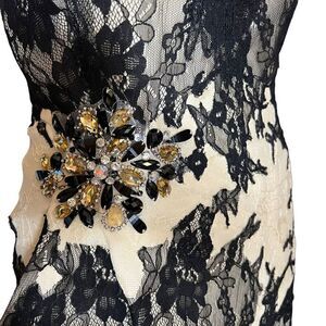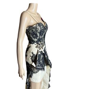 NWT Terani Couture Lace Sweetheart Gown. Great for Prom. Black and nude. Low and high - short fronr and long back. Gorgeous. Breathe taking dress. Jeweled flower on hip side. Corset bones inside - for better shape. Removable straps. Be the queen of your prom!!! One of a kind!!! Size 2.