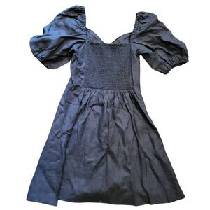 NWT The Drop Dress Women's Small Black Nala Linen Puff Sleeve Mini Boho