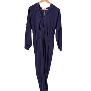 NWT The Korner Navy Blue Jumpsuit Long Sleeve Front Zip with Hoodie in Size S