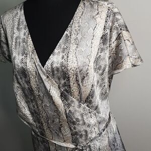 NWT Womens 20 Flowy, Silky material Fully Lined Python Print Wrap Dress Bin 12
