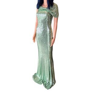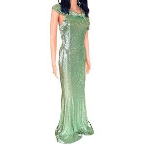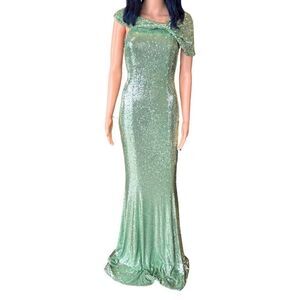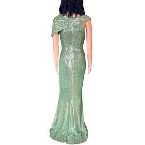 NWT Theia Green Sequin Cap Sleeve Elegant Floor Length Evening Gown