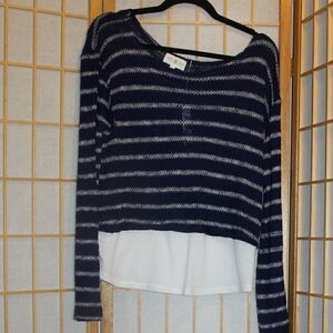 Lightweight false layer sweater from Thyme and Honey. New with tags. Size small. 60% cotton, 35% rayon, 5% spandex. Machine washable. Made in China. Excellent condition. Nonsmoking home.