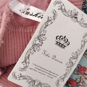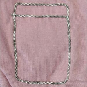Dusty pink top has a sweater knit bodice and semi-sheer sleeves. Ribbed knit cuffs. Tiny silver beads draw a sweater front: two pockets, cardigan front, with decorative buttons down the front. Size XL measures 38 at chest, 28-36 at ribbed bottom. 23 long from shoulder to hem. Super cute, and NEW.