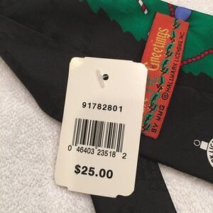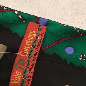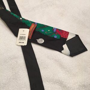 NWT 100% silk black with Santa reindeer decorating tree. Hallmark Yule Tie Greetings brand. Never worn still has tags