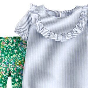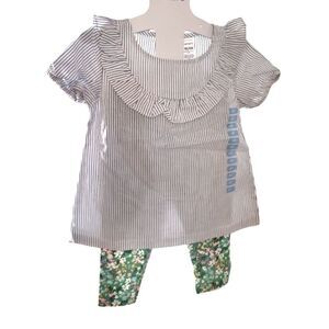 NWT Toddler Girl Carter's 2-Piece Striped Top & Floral Capri Leggings Set