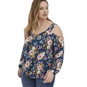 NWT Torrid floral strappy cold shoulder balloon sleeve top 0X