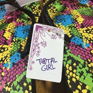 NWT Total Girl JCPENNEY black neon colored flip flops size 2-3