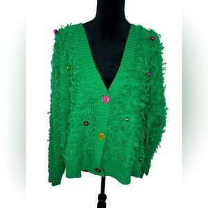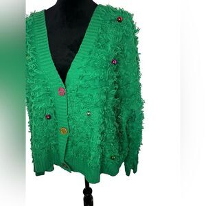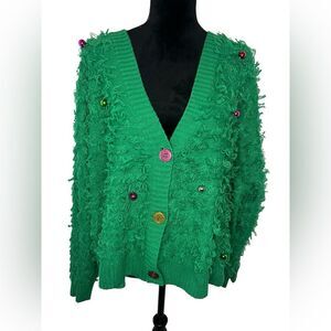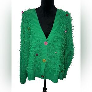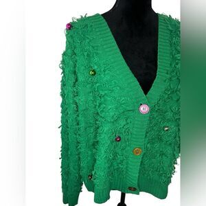Keywords: 33 Degrees, green cardigan, women's sweater, knit, long sleeve, Christmas, festive, winter, casual, machine washable, new with tags.